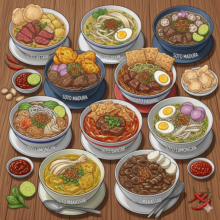 Soto, sebuah hidangan sup tradisional yang tersusun dari kaldu berempah, daging, dan aneka sayuran, telah…