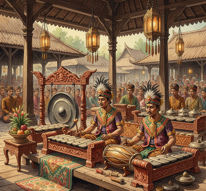 Alat musik tradisional Indonesia, mengupasnya dari perspektif etnomusikologi, sejarah, dan antropologi budaya. Melalui pendekatan klasifikasi ilmiah Hornbostel-Sachs, tulisan ini mengkaji empat studi kasus utama—Gamelan, Angklung, Sasando, dan Kolintang—untuk mengeksplorasi hubungan intrinsik antara instrumen, ritual, identitas sosial, dan filosofi. Analisis menyoroti bagaimana alat musik ini berfungsi sebagai penjaga tradisi sekaligus entitas dinamis yang beradaptasi dengan era modern, didukung oleh upaya pelestarian formal dan informal. Tulisan ini juga mengeksplorasi peran penting pengakuan global, seperti status Warisan Budaya Takbenda UNESCO dan perlindungan Kekayaan Intelektual oleh Organisasi Kekayaan Intelektual Dunia (WIPO), dalam memperkuat posisi alat musik tradisional di panggung dunia.