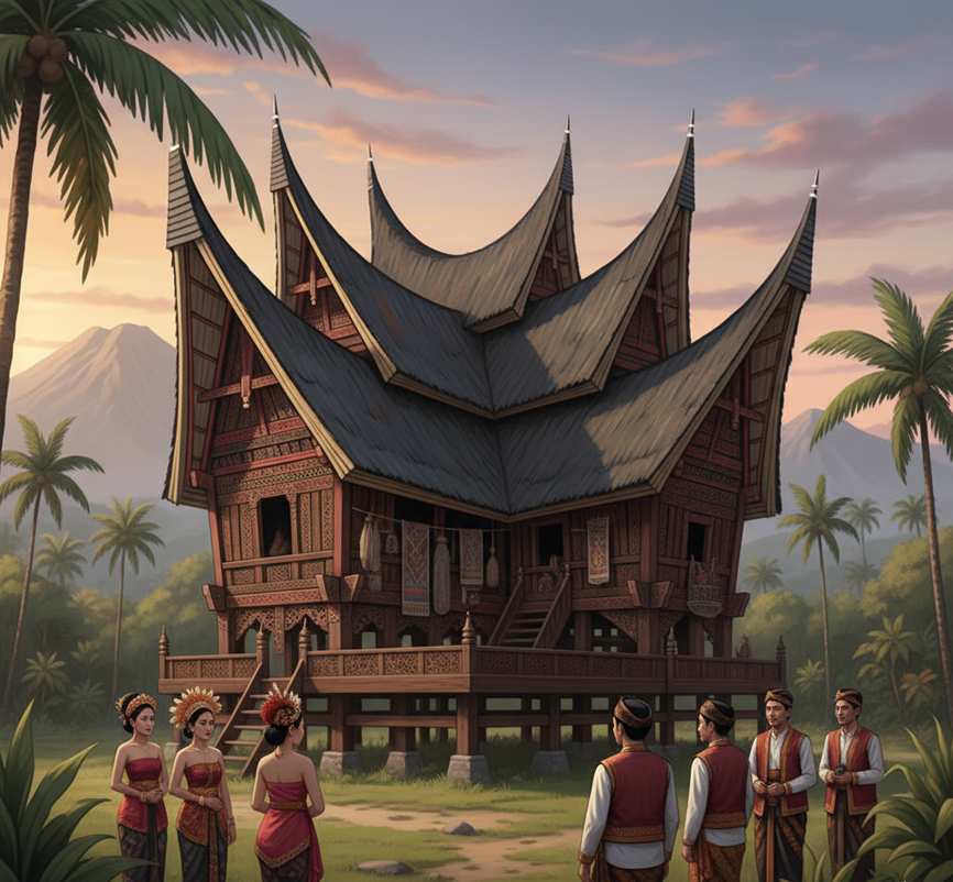 Rumah Gadang Suku Minangkabau adalah arsitektur adat yang paling mencolok dalam menegaskan sistem matrilineal. Bangunan ini jauh melampaui fungsinya sebagai tempat tinggal. Di dalamnya, Rumah Gadang bertindak sebagai “suatu lembaga di dalam keluarga besar suku Minangkabau,” di mana semua fungsi ruang diatur oleh hukum adat.