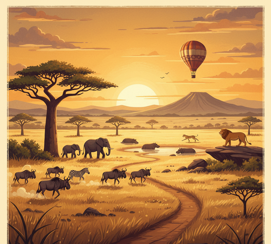 Safari Balon Udara: Tur balon udara menawarkan pengalaman unik yang menenangkan dan memberikan pemandangan panorama Migrasi Besar dari udara.Pengalaman ini sering digambarkan lebih baik daripada di darat, karena memungkinkan pandangan skala penuh tentang betapa besarnya kawanan migrasi tersebut.