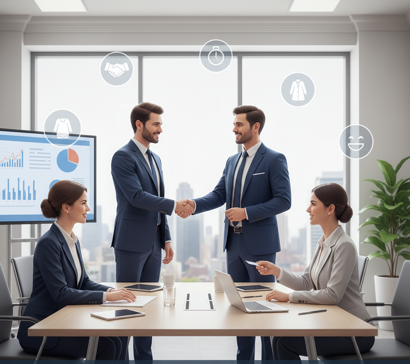 - Penghormatan Visual: Selama rapat, kartu nama mitra harus diletakkan di atas meja, tetap terlihat, sebagai tanda penghargaan.