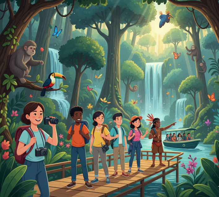 - Contoh Destinasi Kosta Rika: Taman Nasional Manuel Antonio terkenal dengan keanekaragaman hayati, margasatwa yang melimpah (monyet howler, sloth, burung toucan), dan jaringan jalur pendakian yang memungkinkan pertemuan dengan satwa liar di habitat aslinya. Kawasan Gunung Berapi Arenal dan La Fortuna menawarkan aktivitas minim dampak seperti zip-lining melalui kanopi hutan hujan dan berendam di mata air panas alami.